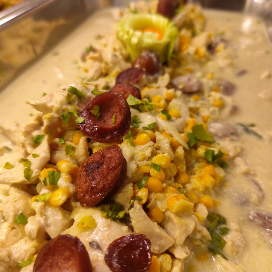 Fajitas de pollo en crema de maíz y chorizo